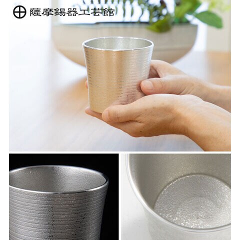 薩摩錫器 タンブラー オンザロック 260ml 吹雪加工 桐箱入り 岩切美巧堂 86A-1【錫製 ロックグラス 錫 タンブラー コップ 酒器 食器 鹿児島県 伝統工芸品 日本製】 錫