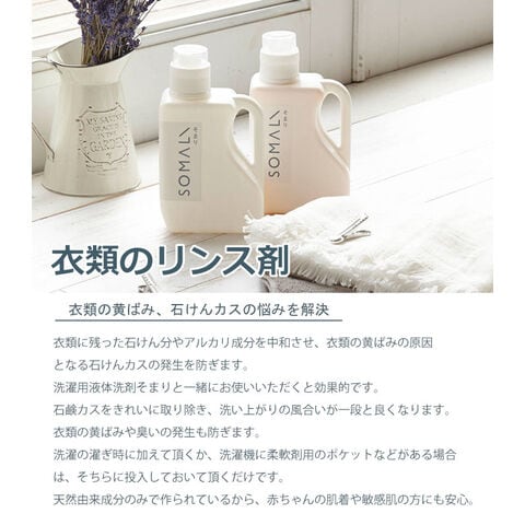 商品説明SOMALI 洗濯用液体石けん」と一緒にお使いいただくと効果的です。石鹸かすをきれいに取り除き、洗い上がりの風合いが一段と良くなります。