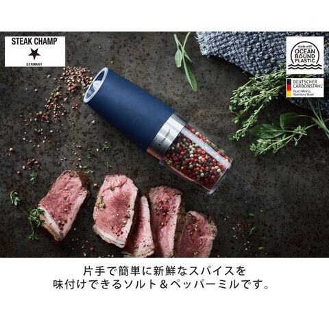 ステーキチャンプ 重力式 電動 ソルト&ペッパーグラインダー 34-2000-04 STEAK CHAMP Gravity Electric Pepper Grinder【ソルト&ペッパーミル 電動ミル アウトドア 調理器具】