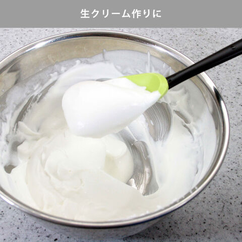 先端がシリコン製で柔らかく、ボウルなどにフィットしてすくいやすい形状です。