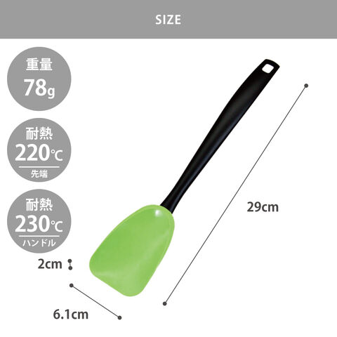 | 材質 | ヘッド:シリコーンゴム(耐熱温度:230℃) ハンドル:ナイロン(グラスファイバー含む)(耐熱温度:230℃) |