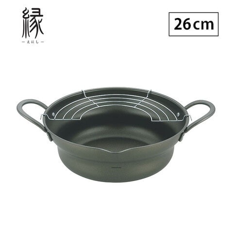 縁 揚げ鍋 広口 揚げ網付 26cm ガス火 IH対応 タマハシ エポラス EN-W26W【天ぷら鍋 鉄製 日本製】