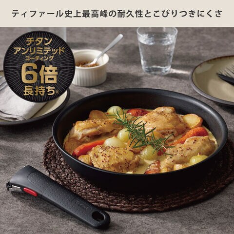 ティファール史上最高峰の耐久性を実現した「チタン・アンリミテッドコーティング」で、使い始めのこびりつきにくさが長く続きます。