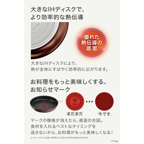 底面のディスクを極限まで大きくしたことで、熱伝導がより効率的に。すばやく均一な熱伝導で、食材の旨味を封じ込めます。