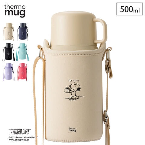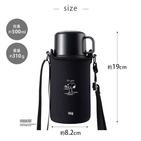 サーモマグ スヌーピー ピーナッツ トリップボトル 500ml ストラップ コップ付き thermomug SNOOPY PEANUTS TRIP BOTTLE TP20PNW1【水筒 子供 キッズ ステンレス 保温 保冷 コップ付き水筒】ブラック