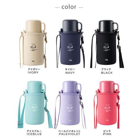 容量はたっぷり飲める500ml。ワンタッチ式の注ぎ口で、手軽に注ぐことができます。カバーケースのストラップは長さ調整が可能。