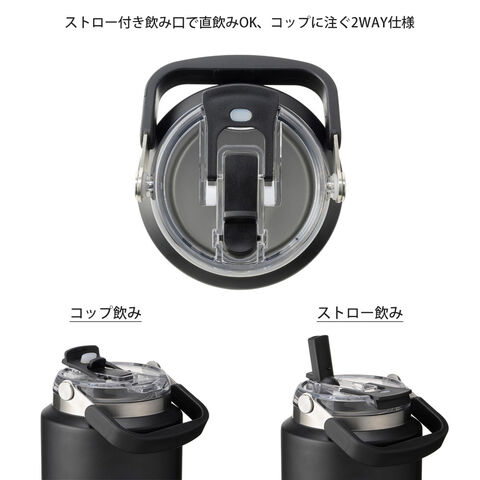 ストローで直接飲む+コップに注げる2WAYタイプ。2種類の飲み口がついています。