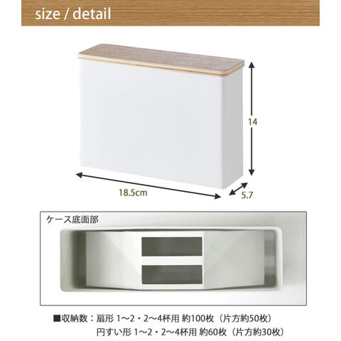 | 収納可能数 | 扇形:1~2・2~4杯用 約100枚(片方約50枚) 円すい形:1~2・1~4杯用 約60枚(片方約30枚) |