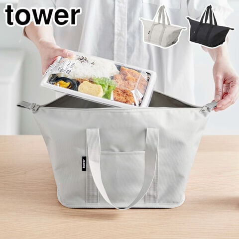 タワー スーパー・コンビニ弁当がそのまま入る洗えるお弁当バッグ 山崎実業 ライト1939 1940 yamazaki tower【ランチバッグ お弁当バッグ お弁当袋 エコバッグ 大容量 タワーシリーズ】 ライトグレー