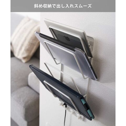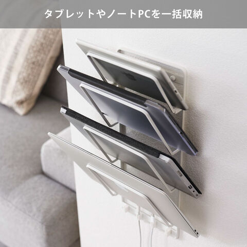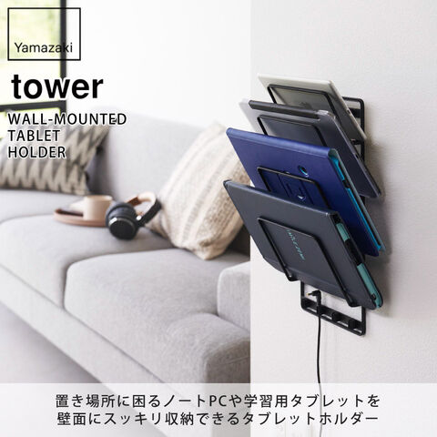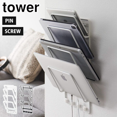 タワー 石膏ボード壁対応ウォールタブレットホルダー 4段 山崎実業 1979 1980 yamazaki tower【タブレット ノートパソコン 本 ブックスタンド タブレットスタンド 壁面収納 インテリア キッチン 収納】 ホワイト