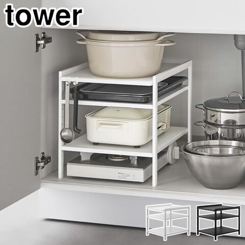 タワー 高さ調節シンク下ラック 山崎実業 2011 2012 yamazaki tower【シンク下収納 鍋 ホットプレート カセットコンロ 収納ラック 収納棚 隙間収納 コンパクト】 ブラック