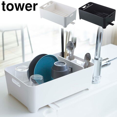 タワー 水切りバスケット 山崎実業【ラック 大容量 プラスチック yamazaki tower タワーシリーズ】 ブラック