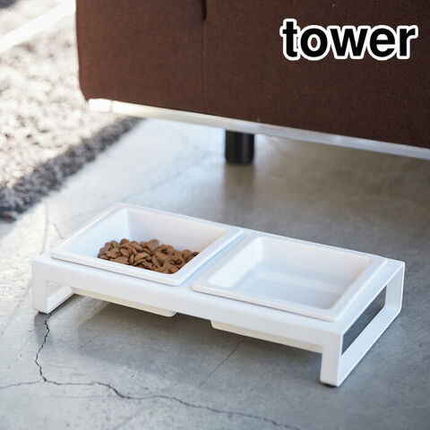 タワー ペットフードボウルスタンドセット 山崎実業 4206 4207【犬 猫 スチール エサ 餌入れ ペット用品 yamazaki tower タワーシリーズ】 ブラック
