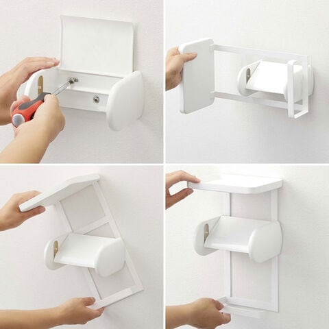 | 商品説明 | トイレットペーパーホルダーに差し込むだけの簡単取り付け! ホルダーの上下が収納スペースに。 下部ハンガーには、トイレットペーパーロールのストックを収納可能。 トレーは、掃除用具の収納やスマートフォンの一時置きなどに使えます。 |