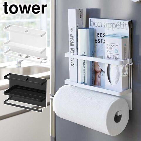 タワー マグネットキッチンペーパー&ラップホルダー 山崎実業 4396 4397【ケース 収納 スリム yamazaki tower タワーシリーズ】 ブラック