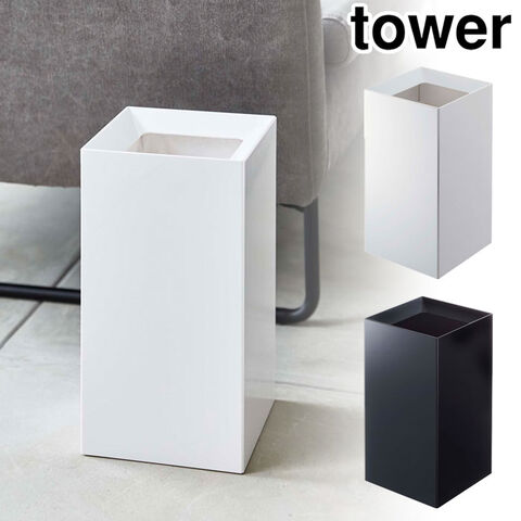 タワー トラッシュカン 山崎実業 4492 4493【ゴミ箱 ごみ箱 ダストボックス リビング 洗面所 トイレ スリム レジ袋対応 yamazaki tower タワーシリーズ】 ブラック