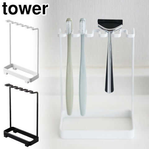 タワー 歯ブラシスタンド 5連 山崎実業 4698 4699 yamazaki tower【子供歯ブラシ 歯科用歯ブラシ 電動歯ブラシ用替えブラシ シェーバー T字カミソリ ホルダー 収納 ラック タワーシリーズ】 ホワイト