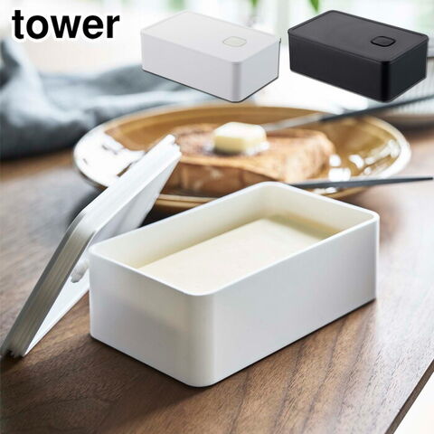 タワー バルブ付き密閉バターケース 山崎実業 4821 4822【バター 200g 保存容器 収納ケース キッチン 台所 収納 yamazaki tower タワーシリーズ】 ブラック