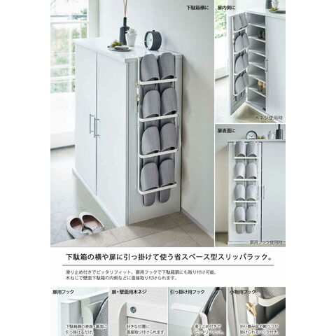 下駄箱の横や扉に引っ掛けて使う省スペース型スリッパラック