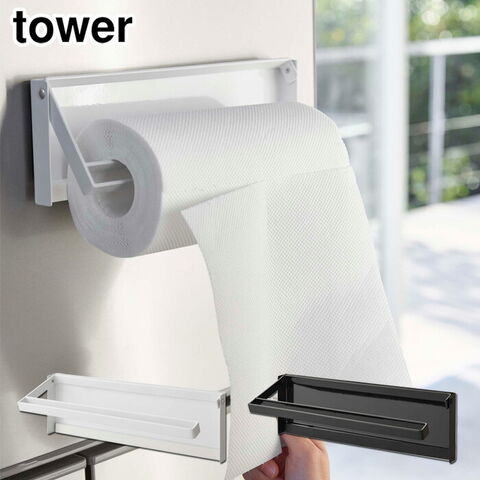 タワー 片手でカットマグネットキッチンペーパーホルダー 山崎実業 4941 4942【磁石 ロールペーパーホルダー キッチン 台所 収納 整理 yamazaki tower タワーシリーズ】 ブラック