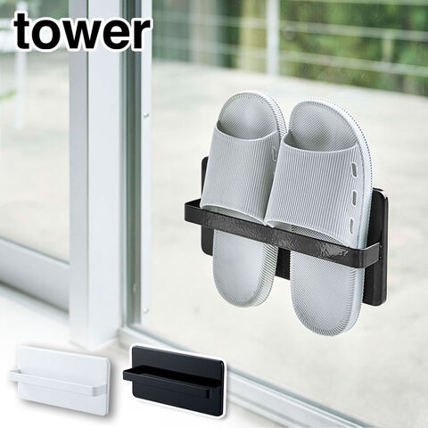 タワー ツーウェイベランダスリッパラック 山崎実業 4963 4964 yamazaki tower【スリム スリッパフォルダー 吸盤 浮かせる 壁掛け ベランダ リビング 玄関 扉 窓 外履き タワーシリーズ】 ブラック