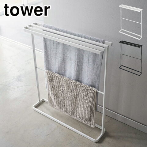 タワー 横から掛けられるバスタオルハンガー タワー スリム 山崎実業 5576 5577 yamazaki tower【風呂 洗面所 バス用品 タオル掛け タワーシリーズ】 ブラック