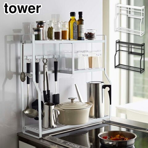 タワー コンロサイドラック 山崎実業 5234 5235【コンロ脇 コンロサイド ラック キッチン 収納 yamazaki tower タワーシリーズ】 ホワイト