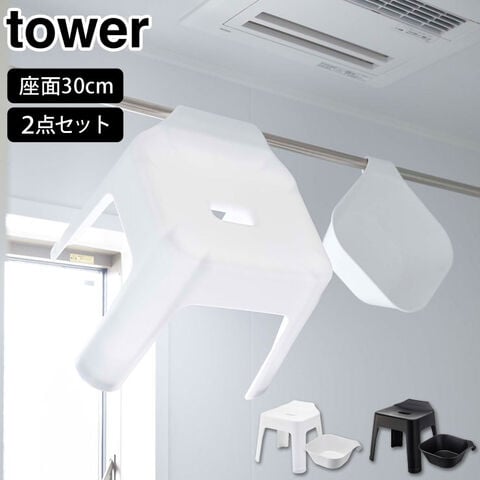タワー 引っ掛け風呂イス SH30 マグネット&引っ掛け湯おけ セット 山崎実業 yamazaki tower【バス 風呂椅子 30cm バスチェア 風呂桶 お風呂 タワーシリーズ】 ブラックセット