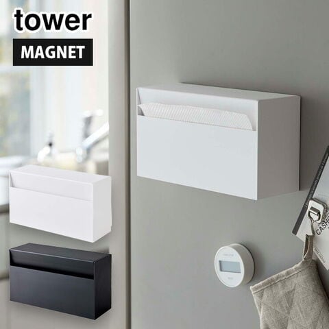 tower,タワー,マグネットペーパーホルダー,山崎実業,yamazaki置いても、マグネットで壁に付けても使える、スマートなペーパーホルダーお好みの向きで使用できますテーブルやキッチンカウンター上でも使える置く向きを変えても使用可約W23.5×D12×H7cm以内のボックス,袋入りティッシュペーパー,キッチンペーパー,ペーパータオル