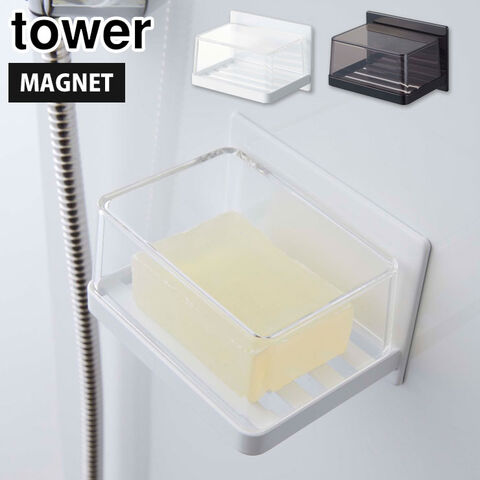 タワー マグネットバスルーム カバー付きソープトレー 山崎実業 5554 5555 yamazaki tower【石鹸置き 石けんホルダー バス お風呂 浴室 洗面所 磁石 収納 壁面収納 タワーシリーズ】 ブラック