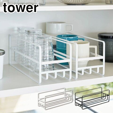 タワー スリム マグボトル&コップラック 山崎実業 5643 5644 yamazaki tower【マグボトル収納 食器棚 引き出し 収納 マグ コップ ラック キッチン 台所 収納 キッチン タワーシリーズ】 ホワイト
