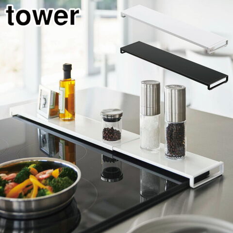 タワー 伸縮排気口カバー フラットタイプ 山崎実業 5732 5733 yamazaki tower【油はね ガード 排気口カバー 60cm 75cm フラット ガスコンロ IHクッキングヒーター ラック タワーシリーズ】 ホワイト
