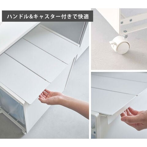 | サイズ | 本体:約W50.5×D33×H55cm(キャスター含む) 蓋開口時:約H81.5cm 蓋開口部1つあたり:約W15.5×D25cm |