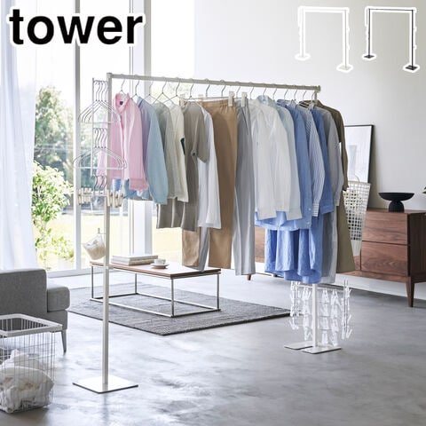 タワー 折り畳み室内物干し 山崎実業 6619 6620 yamazaki tower【室内干し 部屋干し 物干しスタンド 物干しハンガー 折り畳み 物干しラック 洗濯物 スリム収納 組立式】 ホワイト