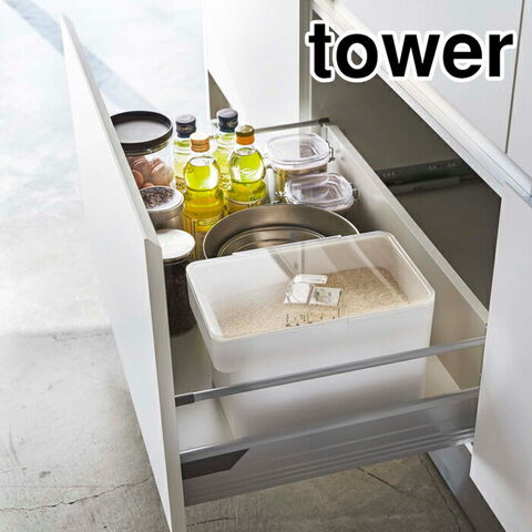 タワー 密閉 シンク下米びつ 5kg 段々米計量カップ付き 山崎実業 3377 3378【米びつ 米櫃 プラスチック 米 保存容器 スリム キッチン 収納 台所 yamazaki tower タワーシリーズ】 ホワイト