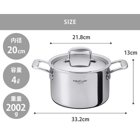 ビタクラフト Nシリーズ 両手鍋 20cm ガス火 IH対応 No.7145【無水調理 鍋 IH 直火 全面7層構造 ステンレス アルミ 調理器具 10年保証】