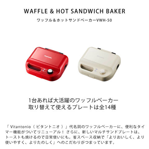 ビタントニオ ワッフル&ホットサンドベーカー VWH-50【ホットサンドメーカー ワッフルメーカー 電気 キッチン家電 Vitantonio WAFFLE & HOT SANDWICH BAKER】 アイボリー