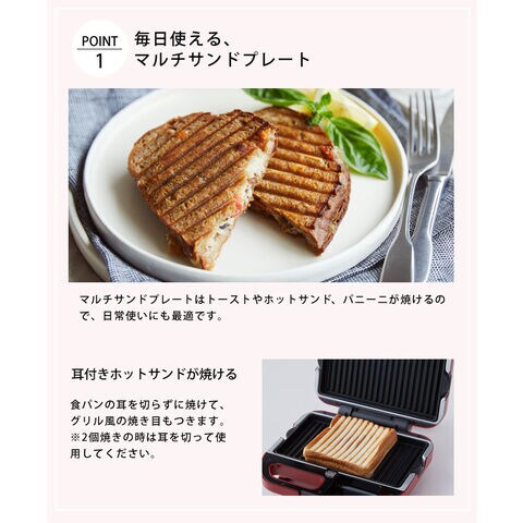 | 付属品 | ワッフルプレート×1、マルチサンドプレート×1、取扱説明書(保証書付) |