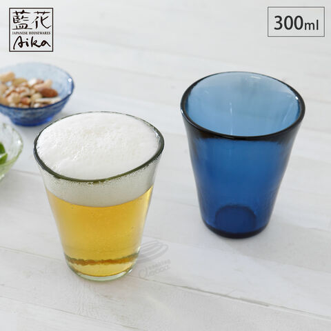 車窓ガラス タンブラー 300ml リサイクルガラス 江戸硝子 岩澤硝子 藍花【グラス コップ ガラス 和食器 日本製】 ネイビー