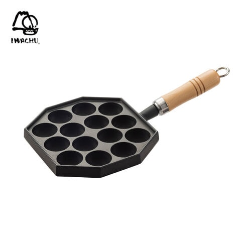 岩鋳 たこ焼き 14穴 木柄付き 直火 IH対応 南部鉄器【たこ焼き器 ガス火 ガスコンロ タコ焼き フライパン 鋳鉄 日本製】