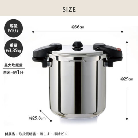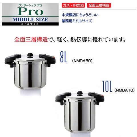 ワンダーシェフ プロ ミドルサイズ 両手 圧力鍋 10L IH対応 厳選レシピ付き NMDA10【圧力なべ ステンレス 業務用 大容量】