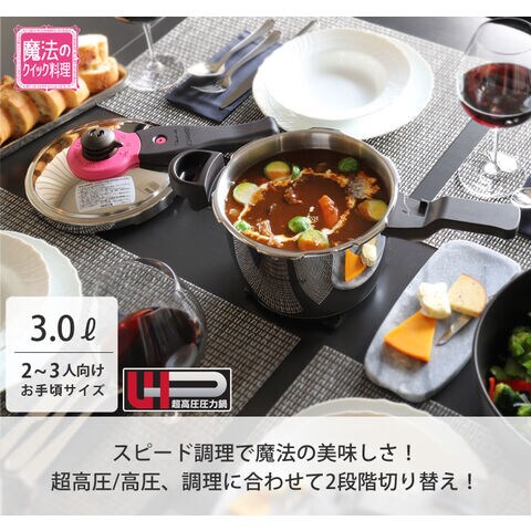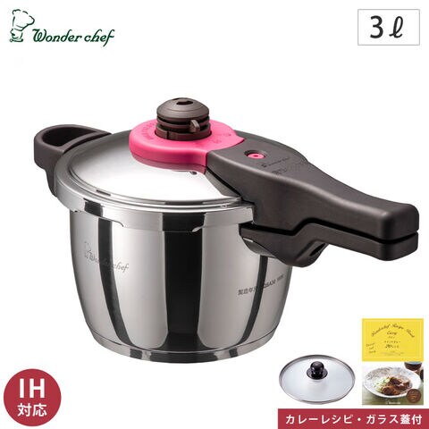 ワンダーシェフ 魔法のクイック料理 片手圧力鍋 3.0L IH対応 カレーレシピ・ガラス蓋付 Wonder chef ZQSA30【圧力鍋 片手 IH ステンレス 超高圧 高圧 圧力切替】