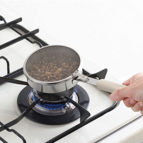 網付きなので、中身が飛び出しにくく、状態を確認しながら煎ることができます。常に動かしながら安全に直火で熱を加えることができます。