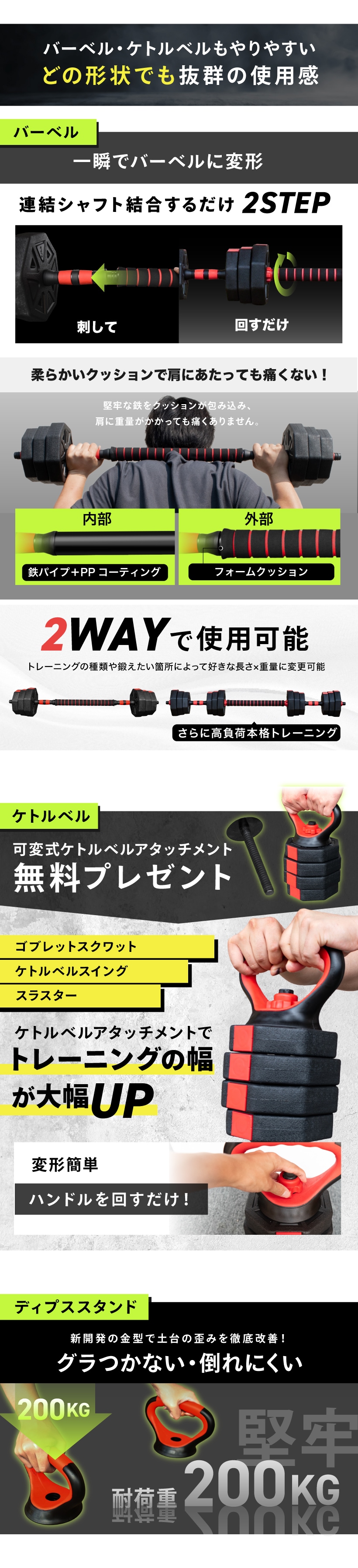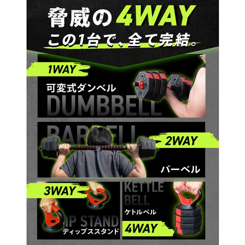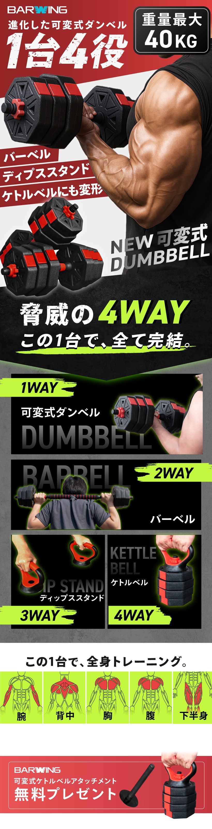 4WAYダンベル ダンベル 可変式ダンベル バーベル ディップススタンド ケトルベル ウエイト トレーニング 筋トレ エクササイズ 筋トレ グッズ ダンベル セット 鉄砂 一台四役 BARWING トレーニング