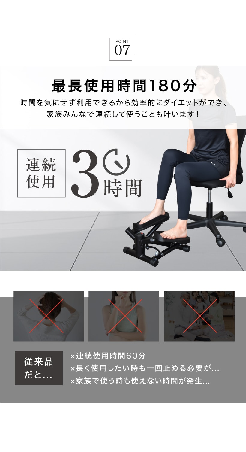 仕様 ・負荷調節/八の字 ・連続使用時間4時間
