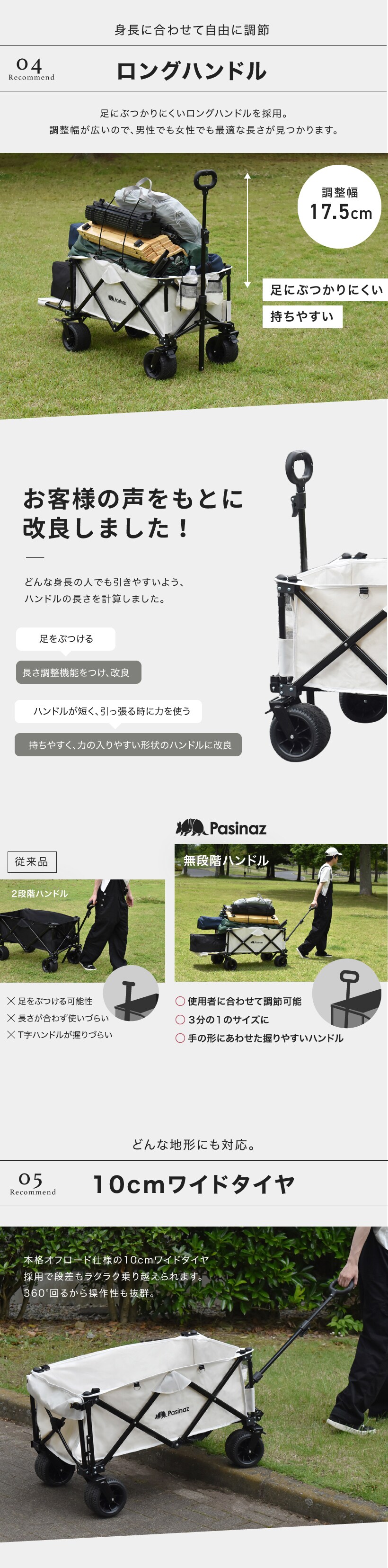 ・無段階ハンドル調節幅17.5cm