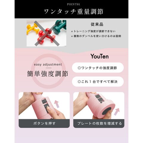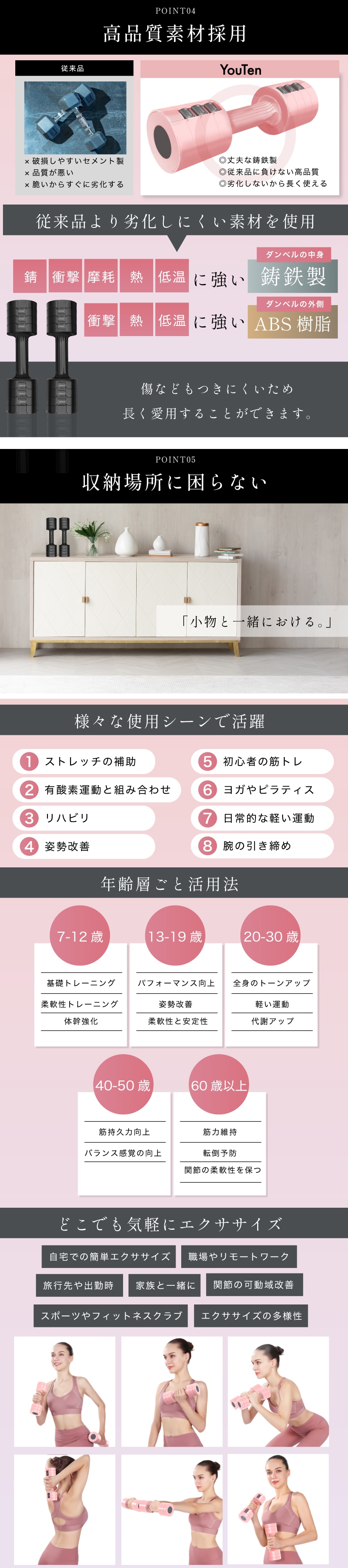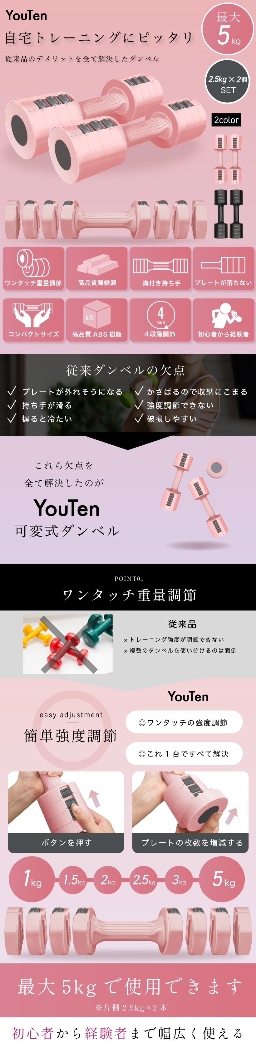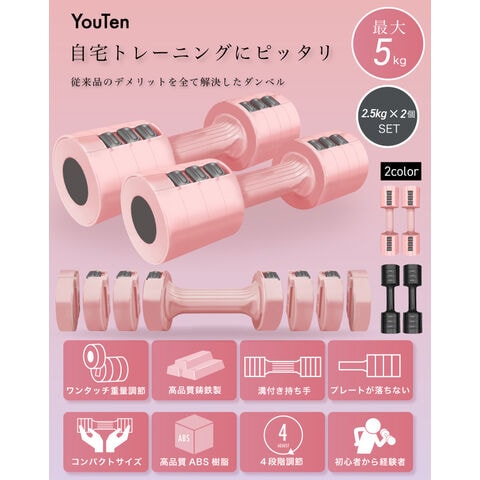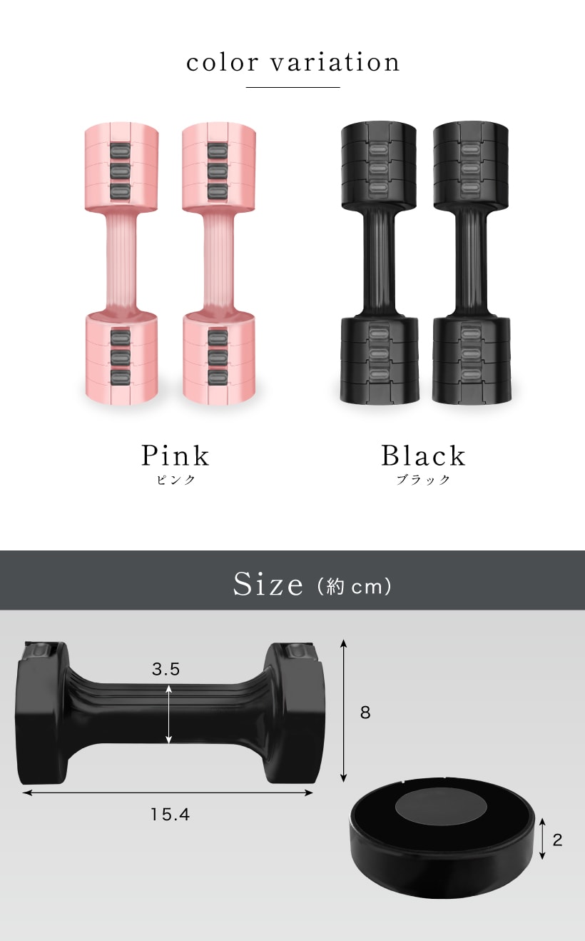 可変式ダンベル 2.5kg 2個セット 4段階調節 重量調節 アジャスタブルダンベル 1-5kg ウエイト トレーニング 筋トレ エクササイズ筋トレグッズ ダンベルセット 可変式 ダンベル 鉄アレイ ブロックダンベル ピンク ブラック 黒