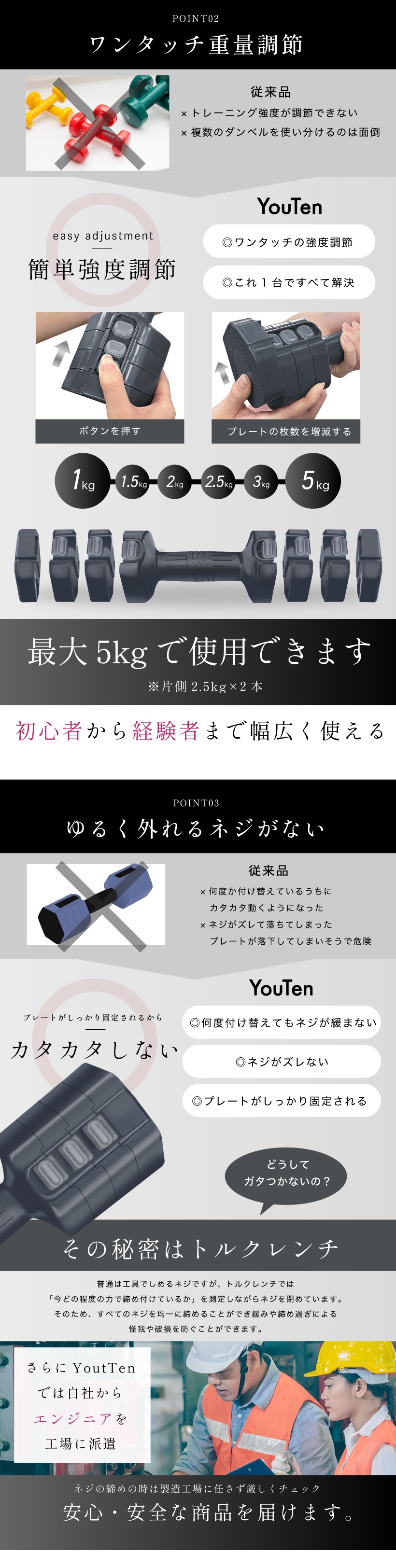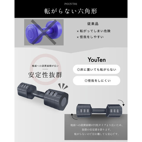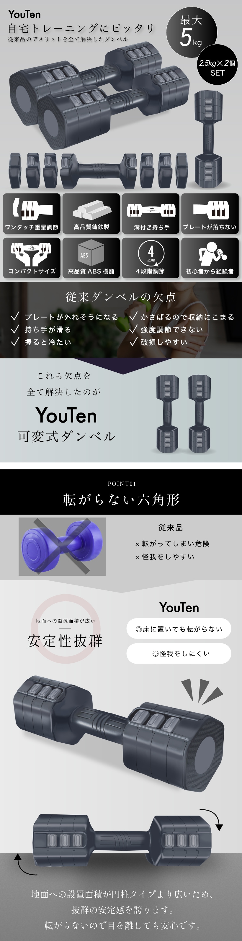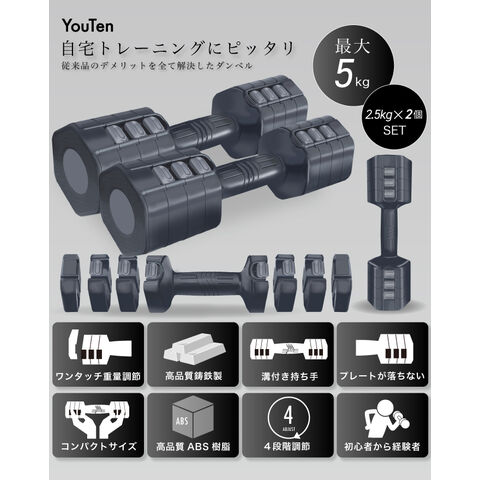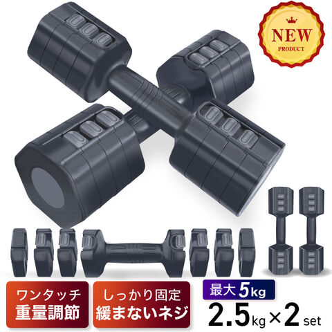 可変式ダンベル 2.5kg 2個セット 4段階調節 六角形 重量調節 アジャスタブルダンベル 1-5kg ウエイト トレーニング 筋トレ エクササイズ筋トレグッズ ダンベルセット 可変式 ダンベル 鉄アレイ ブロックダンベル ブラック 黒