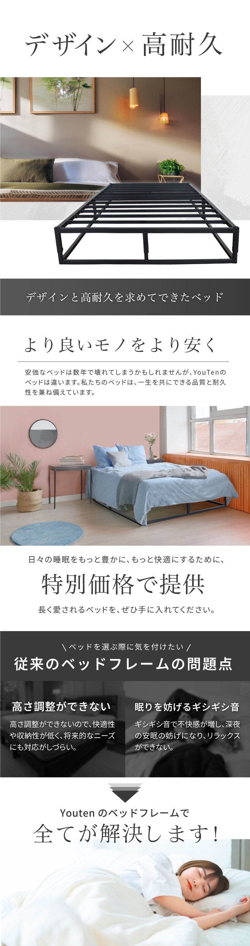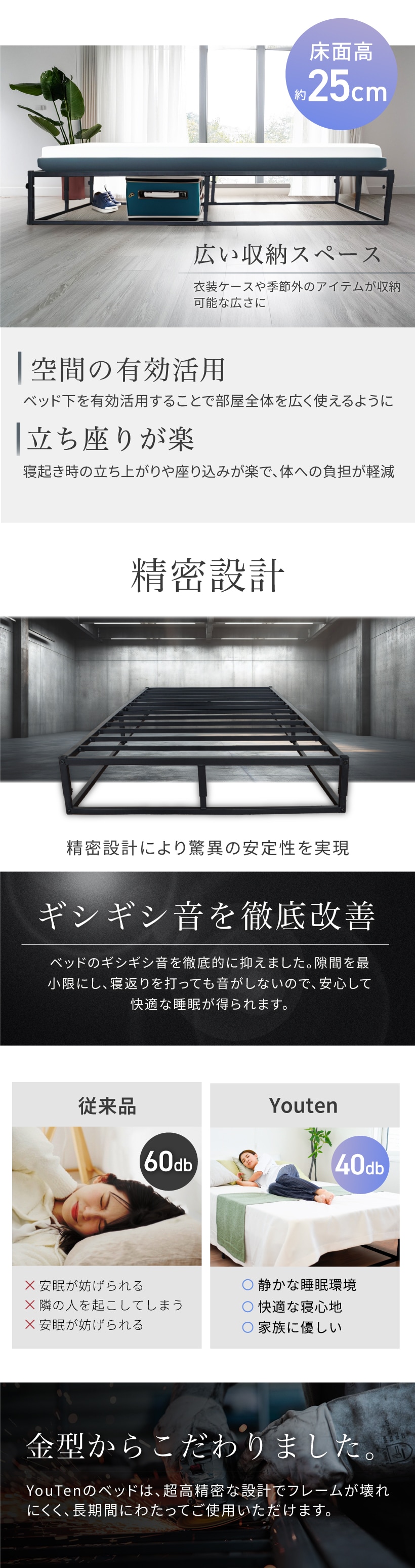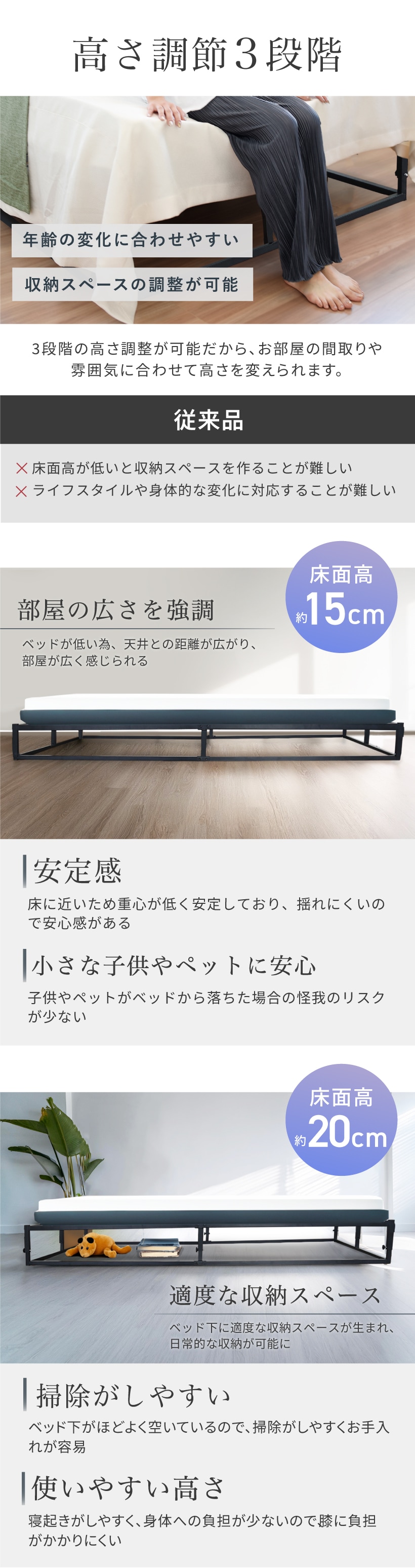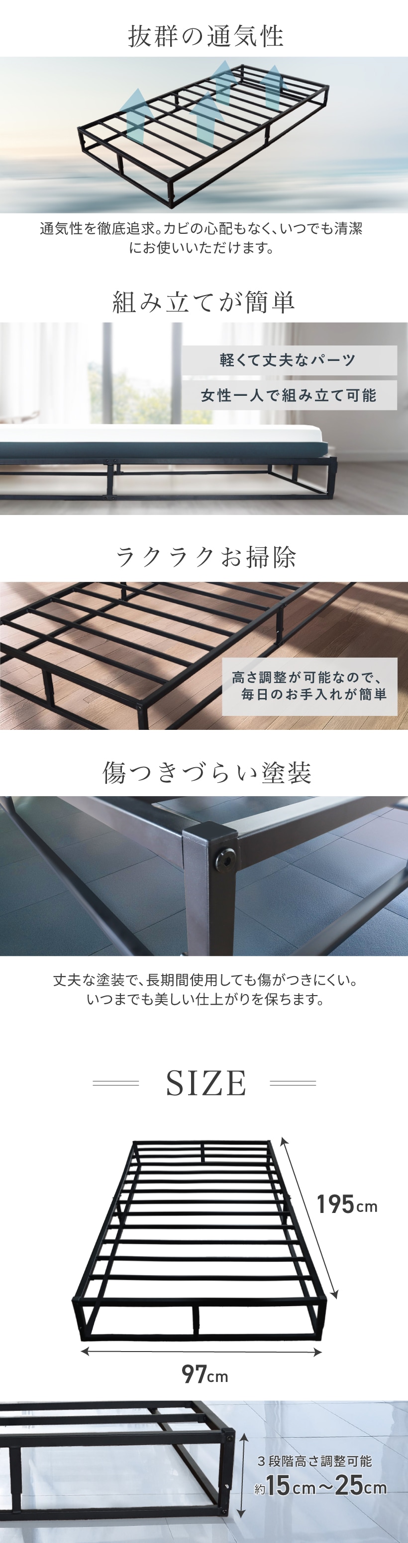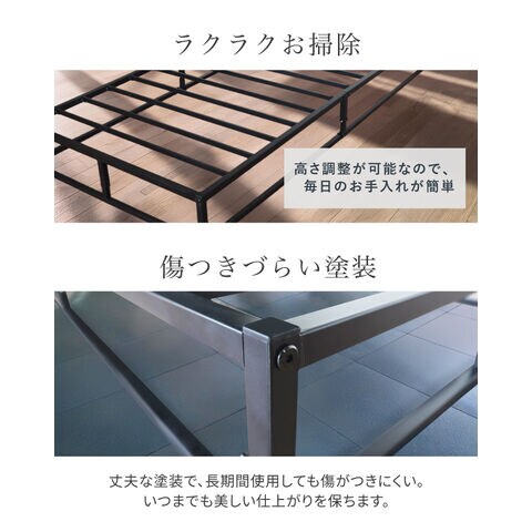 改良モデル NEW ローベッド 高さ調整3段階 アイアンベッド ベッドフレーム シングルベッド パイプベッド 簡易ベッド すのこ スチール ベッド フレームベッド スマート 省スペース デザイン×高耐久 収納 ベッドフレーム