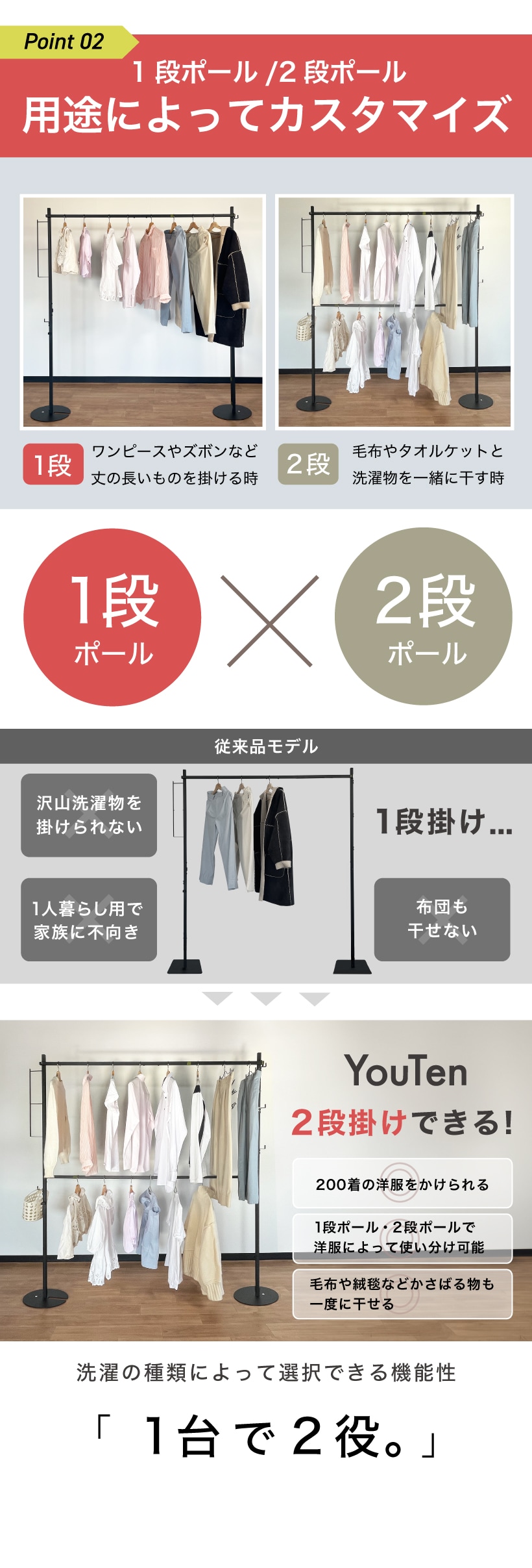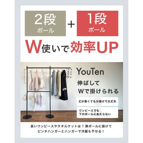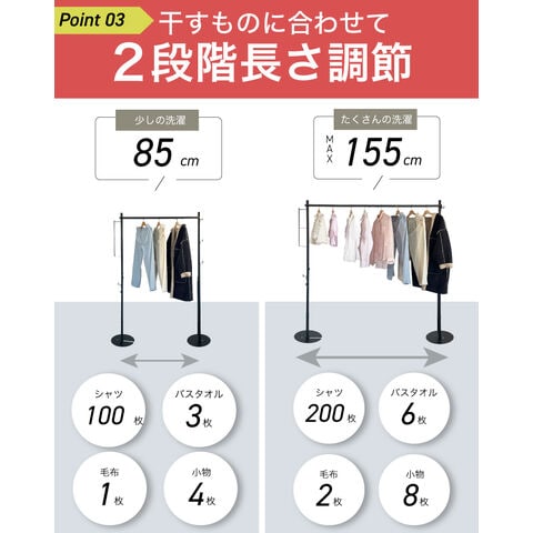 ■室内干しの新革命■ 物干しスタンド ハンガーラック 折畳式 長さ調整可能 1段×2段 超大容量200着 伸縮式 組立簡単 スチールラック コートハンガー ポールラック ランドセルラック ポールハンガー アイアンラック 省スペース ワイドハンガー ダブルハンガー